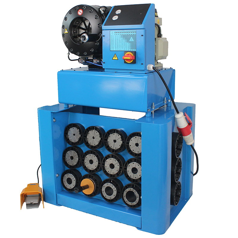 P32MS(標準款)-2.5寸快速換模壓管機/扣壓機/啤喉機(380V/220V)使用高壓柱塞油泵,壓力大,采用八瓣式模具, 模具采用強磁力安裝,具有結(jié)構(gòu)緊湊,操作簡單,油路設(shè)計先進,安裝簡單快捷,更換速度快,效率高,性能可靠,扣壓速度快,扣壓效果好等特點??蹓汗芊秶簝?nèi)徑6-64mm,適合一層至六層鋼絲的高壓油管,液壓油管,膠管,鐵氟龍管,金屬接頭的扣壓加工。